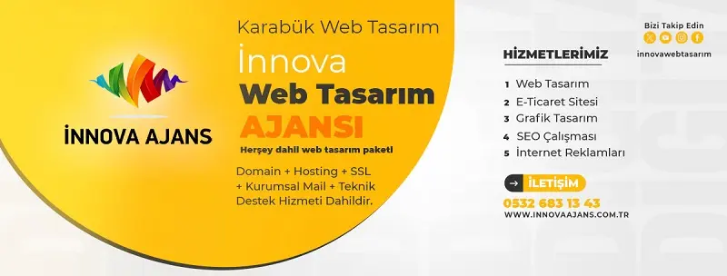 Karabük web tasarım, grafik tasarım, e-ticaret sitesi tasarımı, internet reklamları konusunda İnnova Web Tasarım Ajansı olarak profesyonel olarak çalışıyoruz. Günümüzün en önemli ihtiyaçlarından biri web tasarımı. Şahıslar ve şirketler web tasarımı ile ürün ve hizmetlerini internet üzerinden dünyaya ulaştırabiliyor.